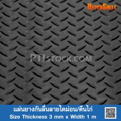 แผ่นยางกันลื่นลายไดม่อน/ตีนไก่ Size Thickness 3 mm x Width 1 m พื้นผิวมีลายป้องกันการลื่น (Anti Slip) ทนน้ำได้ดีเยี่ยม ดักจับฝุ่น ทำความสะอาดง่าย เนื้อยางเหนียว ทนการฉีกขาด ทนการสึกได้ดีเยี่ยม รับแรงได้ดี ปกป้องทุกพื้นผิว ติดตั้งง่าย ยึึดติดกับพื้นผิว ใช้งานได้กว่า เหมาะสำหรับการใช้งานทั้งภายในและภายนอกอาคาร Tel : 0-2257-7154 / MB : 086-307-7319 / Line OA : @PTIRUBBER