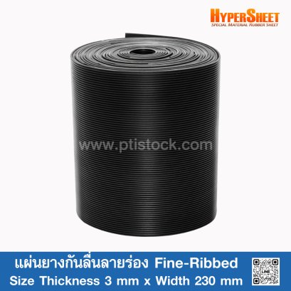 แผ่นยางกันลื่นลายร่อง Fine-Ribbed Size (Fine Ribbed Patterned Rubber mat) Thickness 3 mm x Width 230 mm Tel : 0-2257-7154 / MB : 086-307-7319 Line OA : @PTIRUBBER