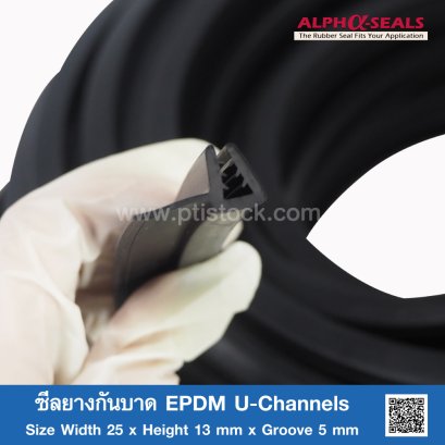 EPDM Rubber Seals U-Channels Size Width 25 x Height 13 mm x Groove 5 mm. Rubber Edge Trim Seals Tel : 0-2257-7145 / MB : 092-656-8846 / Technical Engineer : 098-253-9956 / Line OA : @PTIGLOBAL