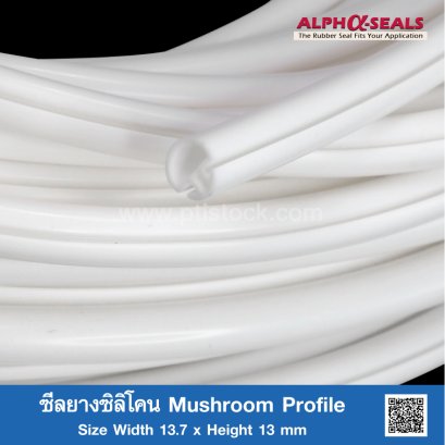 Silicone Rubber Seal Mushroom Profile Size Width 13.7 x Height 13 mm. High heat resistance up to +220ºC, operating temperature -70 to +220ºC, high flexibility, good recovery. Food grade (FDA) rubber seal, no additives Safe for food and beverage industry Material Certification : FDA, REACH , RoHS Tel : 0-2257-7145 / MB : 092-656-8846 / Technical Engineer : 098-253-9956 / Line OA : @PTIGLOBAL